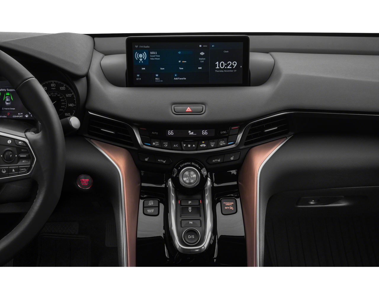 - Radio: Acura Premium Audio System -inc: 10 speakers, True Touchpad Interface, 10.2" HD dual-content center display, 7" color Multi-Information Display (MID), mobile hotspot capability, natural language voice recognition, AcuraLink connected services, Apple CarPlay integration, Android Auto integration, Siri Eyes Free, SMS, MMS text message and email capability, Bluetooth® HandsFreeLink wireless telephone interface, HD Radio, SiriusXM satellite radio, USB audio interface, Bluetooth® streaming audio, MP3/auxiliary input jack, Speed-sensitive Volume Compensation (SVC) and 2 USB charge ports 2.5 charge